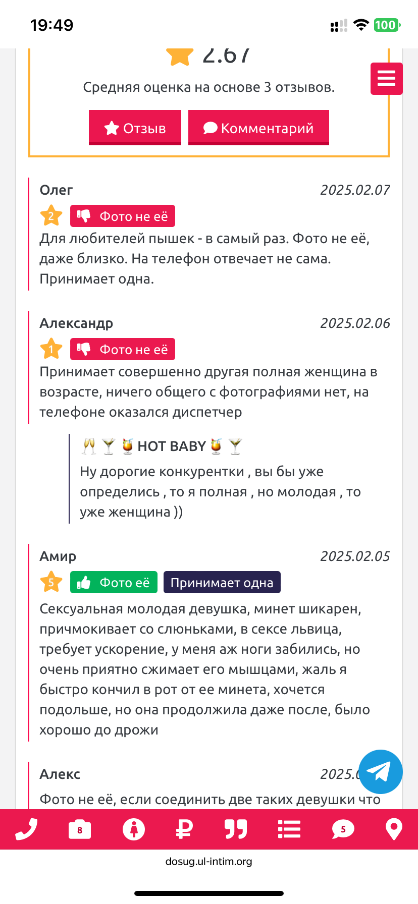 Думаю что многие заметили что едва появляется новая анкета как тут же следом пишется хвалебный отзыв. Похоже что агентства решили избавиться от конкуренции в лице индивидуалок.