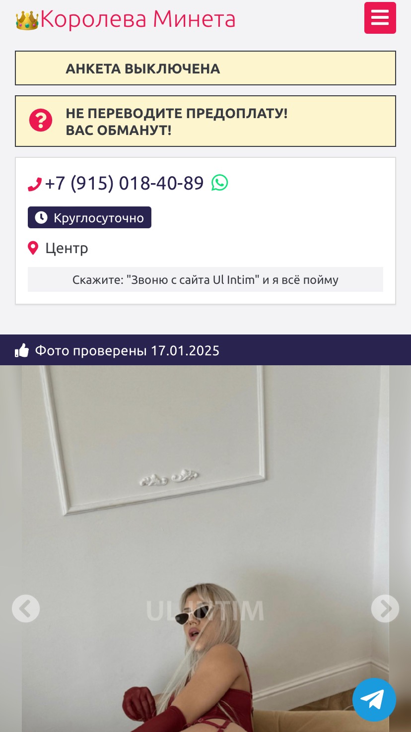 Фото с помощью ИИ ( искусственный интеллект) сделали проверочными. И обманывают. Как только доны написали всю правду про них, они новую анкету и и новое искусственное подтверждение фоток сделали. +7 (915) 018-40-8_ и +7 (915) 018-87-3_ С этих номеров обманы парней идут. Спасибо отзывам