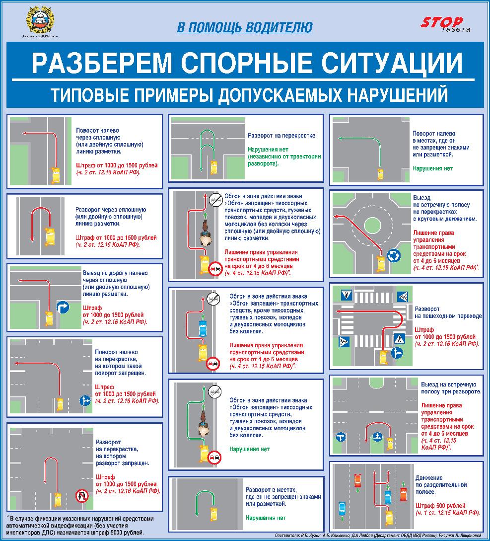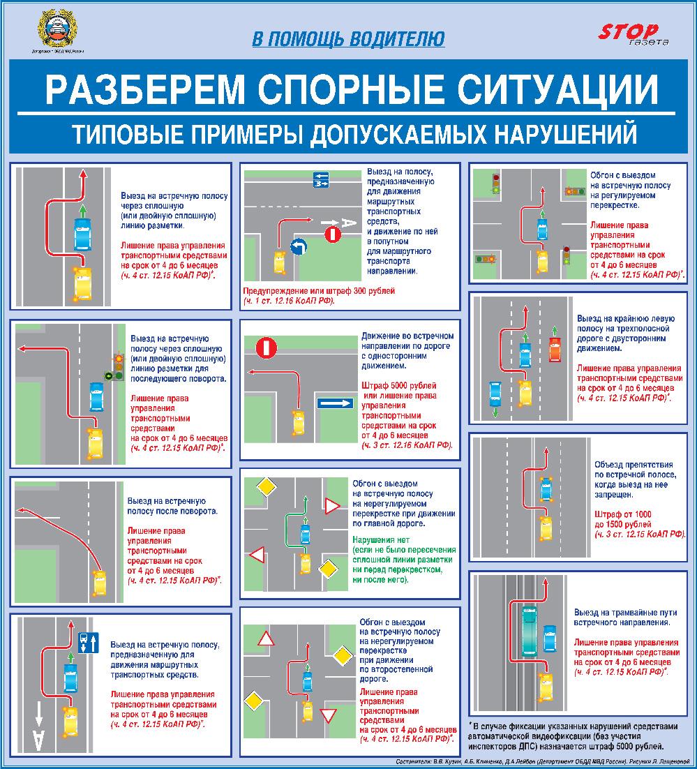ГИБДД выпустила наглядное пособие для решения неоднозначных ситуаций на дорогах, связанных с выездом на встречную полосу движения, обгоном, левым поворотом, разворотом и движением по кругу. Пояснения потребовались в связи с недавним изменением КоАП и решением Верховного суда.
