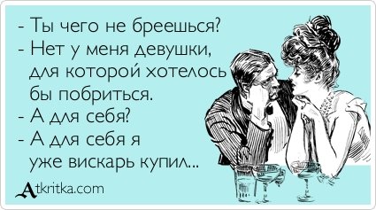 Мужчины страдают не меньше,все мы помним случаи с амбре,которое постигло,как минимум уже двоих во время таинства любви!;(Честная куртизанка писал(а): Рада,да это дело индивидуально,но мужчин интересует как феям нравиться, и почему не каждая лезет всё обласкать. Думаю,ты тоже с радостью отказалась бы от моментов,когда процесс идёт и....этот один,но самый проворливый волосок,который застрял в горле и попытки вынуть его тщетны... и вот ты уже напоминаешь кота ,у которого должен выйти комок шерсти и никак...думаю многие наблюдали сие действие